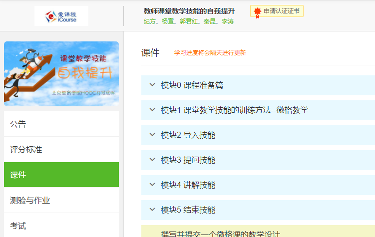 在抗击冠状病毒的特殊时期,微格教学课程面临着上课模式转变的问题——即如何帮助学生在没有实训室的情况下开展微格教学训练?经过认真思考并与其他老师协商,巫老师决定以中国慕课大学已有的微格教学精品课程为理论依托,以学习通为指导平台,以在教师引导下学生居家自主训练为形式开展特殊的微格教学训练。
