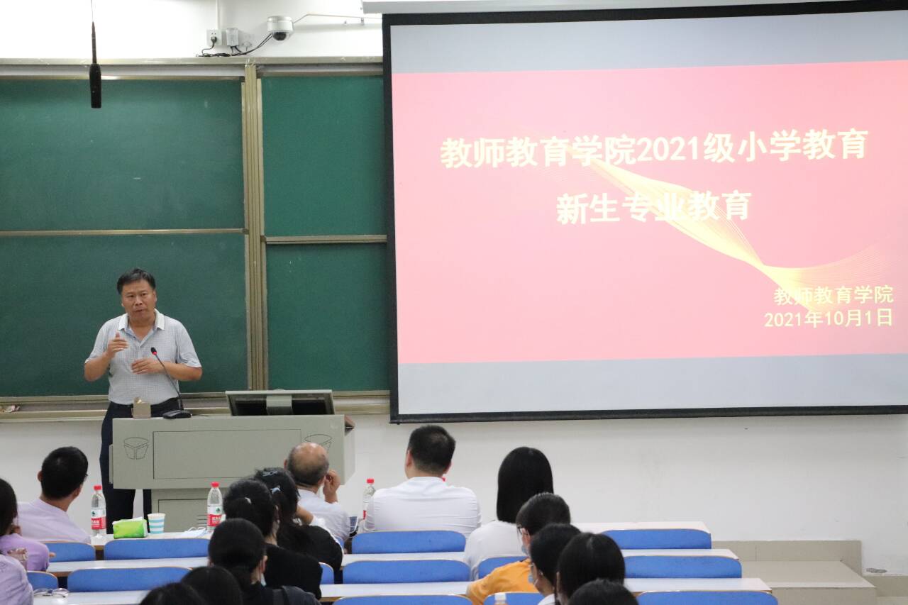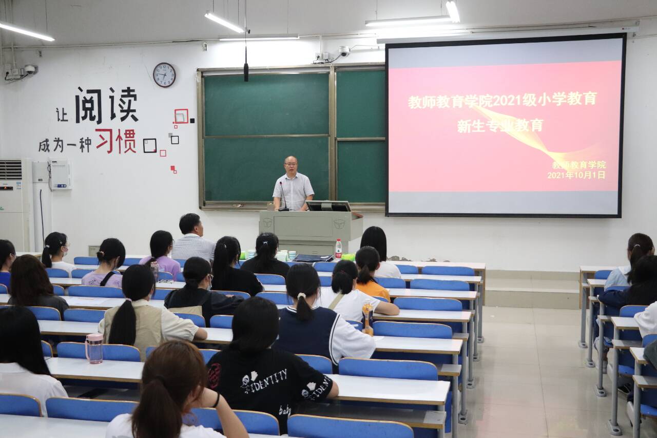 为了促进新生更快地适应大学学习生活,10月1日,太阳成集团tyc151cc在社科楼121举行了2021级新生入学专业教育大会。与会人员有太阳成集团tyc151cc院长付永昌、副院长李文田、教学秘书赵国龙、辅导员刘莅原以及2021级全体小学教育专业本科新生。会议由李文田主持。