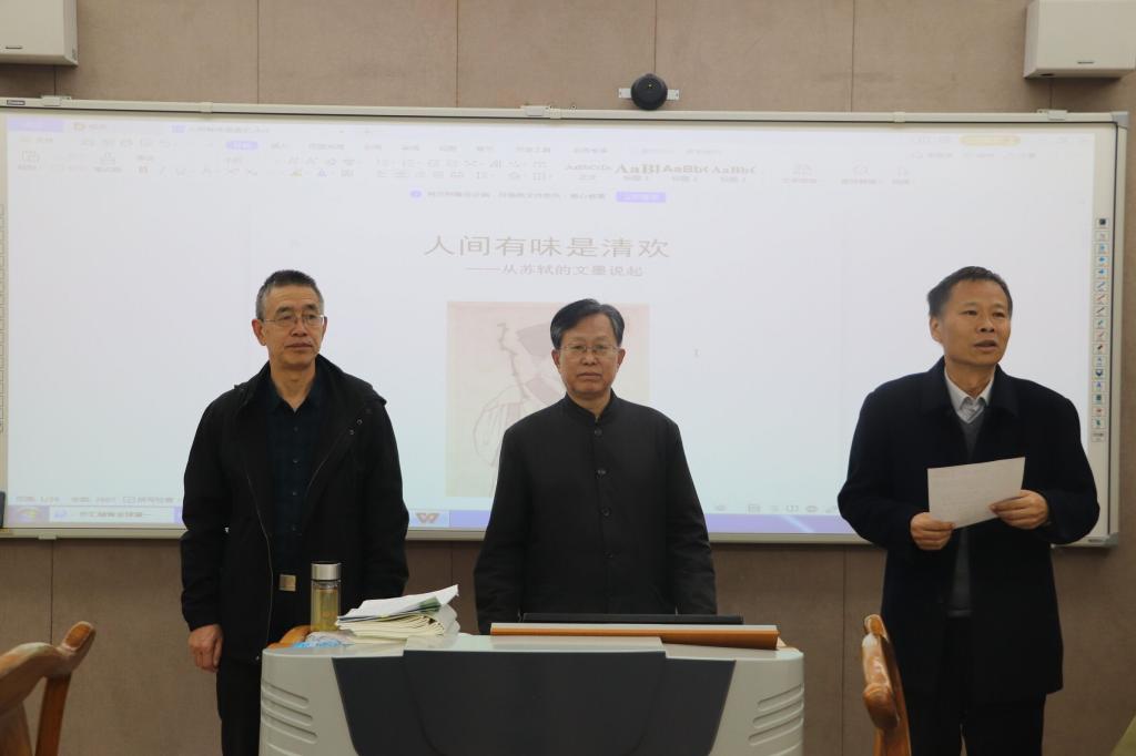 刘根货教授从同学们熟知的苏轼开始讲起。他从东坡印象、东坡人生、东坡蒙难、东坡读书、东坡的人生观等角度,全面展现了苏轼面对三起三落的人生遭际,如何“苦”中作“乐”,以豁达乐观的人生态度获得精神的超越与生命的升华。他讲道,苏轼在词上造诣很高,作为豪放派词人的代表,其诗词内容广阔,风格多样,气势恢宏,笔力纵横,极具浪漫主义色彩。他带领同学们具体了解苏轼屡遭贬谪,波澜起伏的一生。但他时刻关注国计民生,忧国忧民,对失意坎坷等闲视之,以旷达乐观的心态看待一切。接着,他以书法作品《寒食帖》为例,介绍了苏轼书法的三个特点:没有严谨之气,真正做到了书由心书;没有为了书写而书写,书法是他表达情感的一种媒介;真正开启了文人书法,书法是文人具备的一项技能。报告最后,刘根货表示,希望同学们走进苏轼,学习他旷达洒脱的人生态度,乐观面对生活中遇到的挫折。