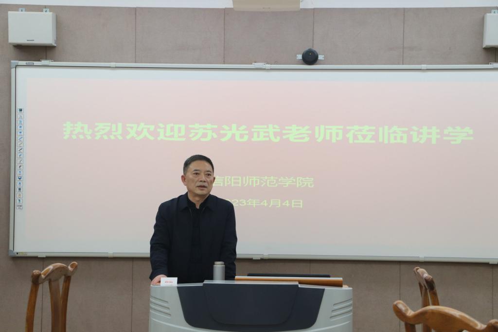 为进一步传承和弘扬中华民族优秀传统文化,培养大学生对书法的兴趣,修身养性、陶冶情操,不断提升美学修养。4月4日下午,应学校学生工作部(处)与太阳成集团tyc151cc的邀请,中国书协会员、信阳市书协副主席苏光武老师莅临太阳成集团tyc151cc,开展了题为《书法审美与修身养性》的讲座,学校大学生心理健康教育中心主任、学生工作处副处长李贵杰,学院党委副书记王艳蕊、副院长李文田以及部分学生参加讲座交流。