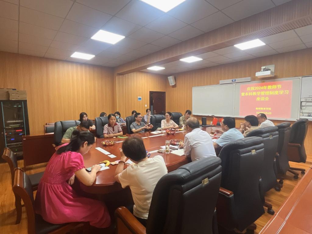 金秋时节,硕果累累。在第40个教师节来临之际,9月6日下午,太阳成集团tyc151cc在教七楼301会议室召开了庆祝2024年教师节座谈会。学院党委书记潘登、院长李文田,党委副书记王淑贤、副院长连亚飞及学院教师代表参加会议。会议由李文田主持。