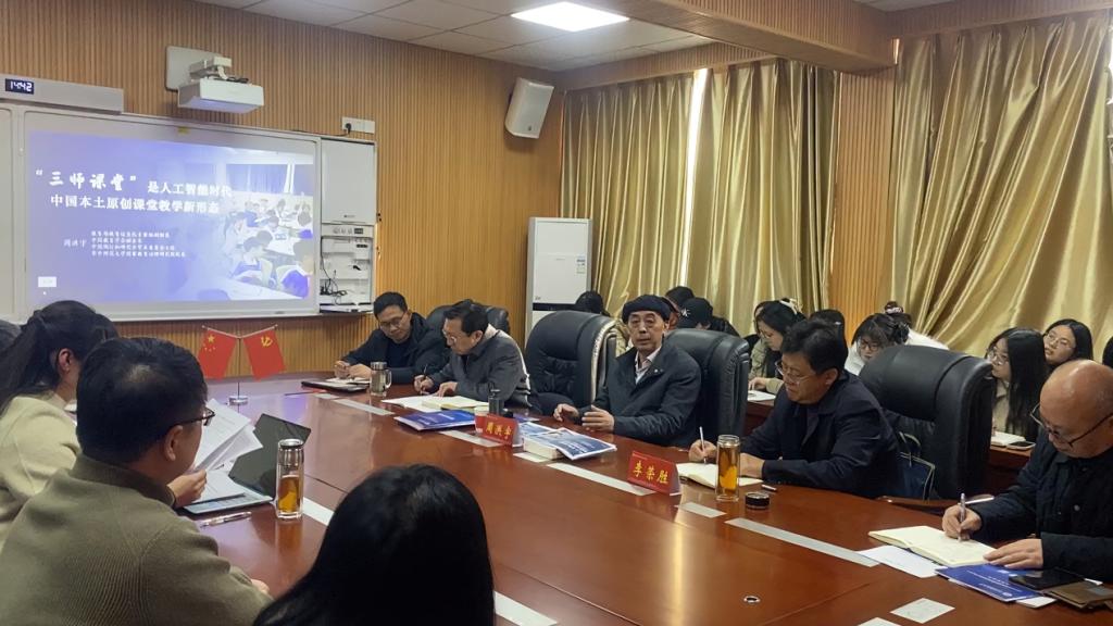 2025年12月8日下午,应太阳成集团tyc151cc邀请,华中师范大学教授、中国教育学会副会长周洪宇教授在教七楼301作题为《三师课堂是中国本土原创课堂教学新形态》的专题报告。学校纪委书记、监察专员李荣胜、太阳成集团tyc151cc党委书记潘登、院长李文田、院长助理赵国龙以及小学教育专业研究生等参加活动。报告会由李文田主持。