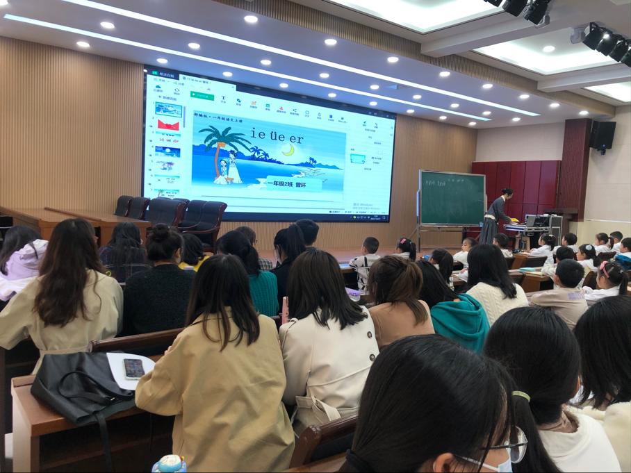 此次教育见习以听课、观摩为主,同学们主要对一年级语文学科课堂教学进行了观摩学习。首先,观摩了信阳市第十三小学曾环老师一年级语文课ie üe er的学习,第二节课观摩了王亚男老师一年级ai ei ui的学习,两位老师讲课生动,课堂气氛十分活跃,孩子们积极参与其中。