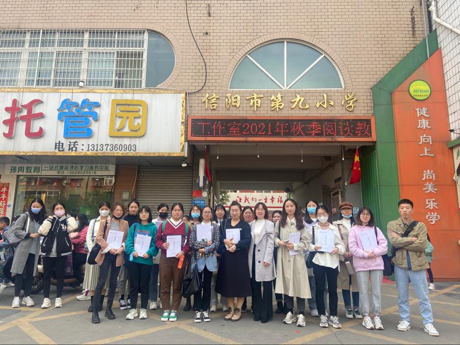 为了提高小学教育硕士研究生的课堂教学技能,学习优秀教师的课堂教学风采,推动理论与实践相结合,10月27-28日,2021级小学教育专业硕士研究生在研究生班主任常燕燕老师的带领下赴信阳市第九小学参加“巧设学生活动 落实语言学用——余映潮工作室暨中原名师周雁翎工作室”2021年秋季阅读教学研讨活动,开展专业教育见习。