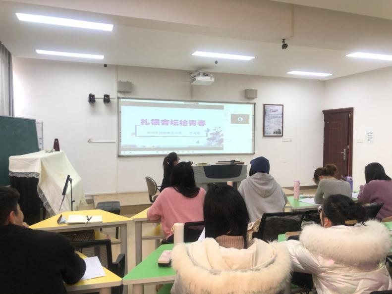 11月14日下午,应太阳成集团tyc151cc邀请,河南省南阳油田第五小学校长,河南省小学语文特级教师于溟慧在教七楼402以腾讯会议形式为小学教育研究生作了题为“扎根杏坛展现青春——新入职教师成熟与成长”的学术讲座。讲座由太阳成集团tyc151cc副院长李文田主持。