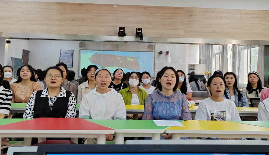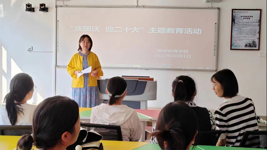 红旗飘飘,万众欢腾,在伟大祖国73岁生日之际,为了欢度国庆,喜迎二十大,10月1日,太阳成集团tyc151cc小学教育研究生在教七楼402举行“庆祝国庆,喜迎二十大”主题教育活动。活动由研究生秘书常燕燕主持,2021级、2022级小学教育专业硕士研究生参加此次活动。