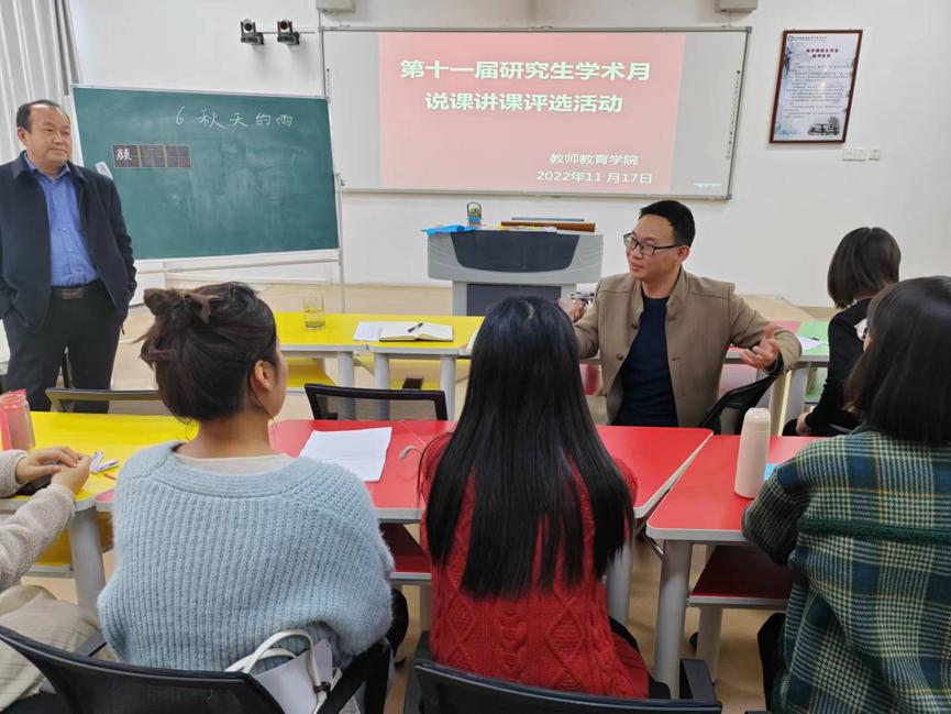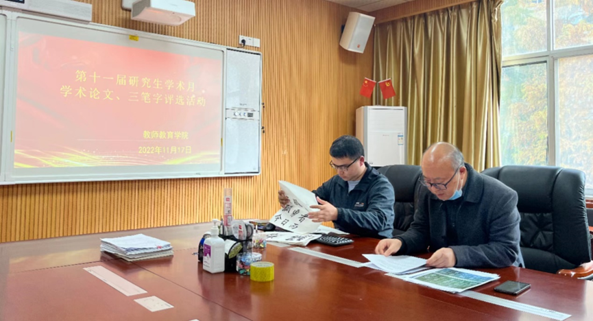 为提高教育硕士专业技能和研究能力,太阳成集团tyc151cc于11月17日举行第十一届研究生学术月评选活动,分别包括说课讲课、“三笔字”以及论文评选。