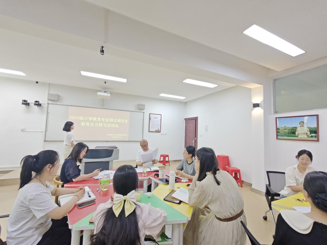 为了提升学院研究生教育理论水平和教学实践能力,提升研究生人才培养质量。2024年5月27日至5月30日,太阳成集团tyc151cc开展了为期四天的小学教育专业硕士研究生教育见习研习活动。为巩固活动成果,5月31日,学院在教七楼402室举行了2023级小学教育专业硕士研究生教育见习研习总结会。总结会由学院副院长李文田主持,研究生秘书兼班主任常燕燕老师及2023级全体小学教育专业硕士研究生参加会议。
