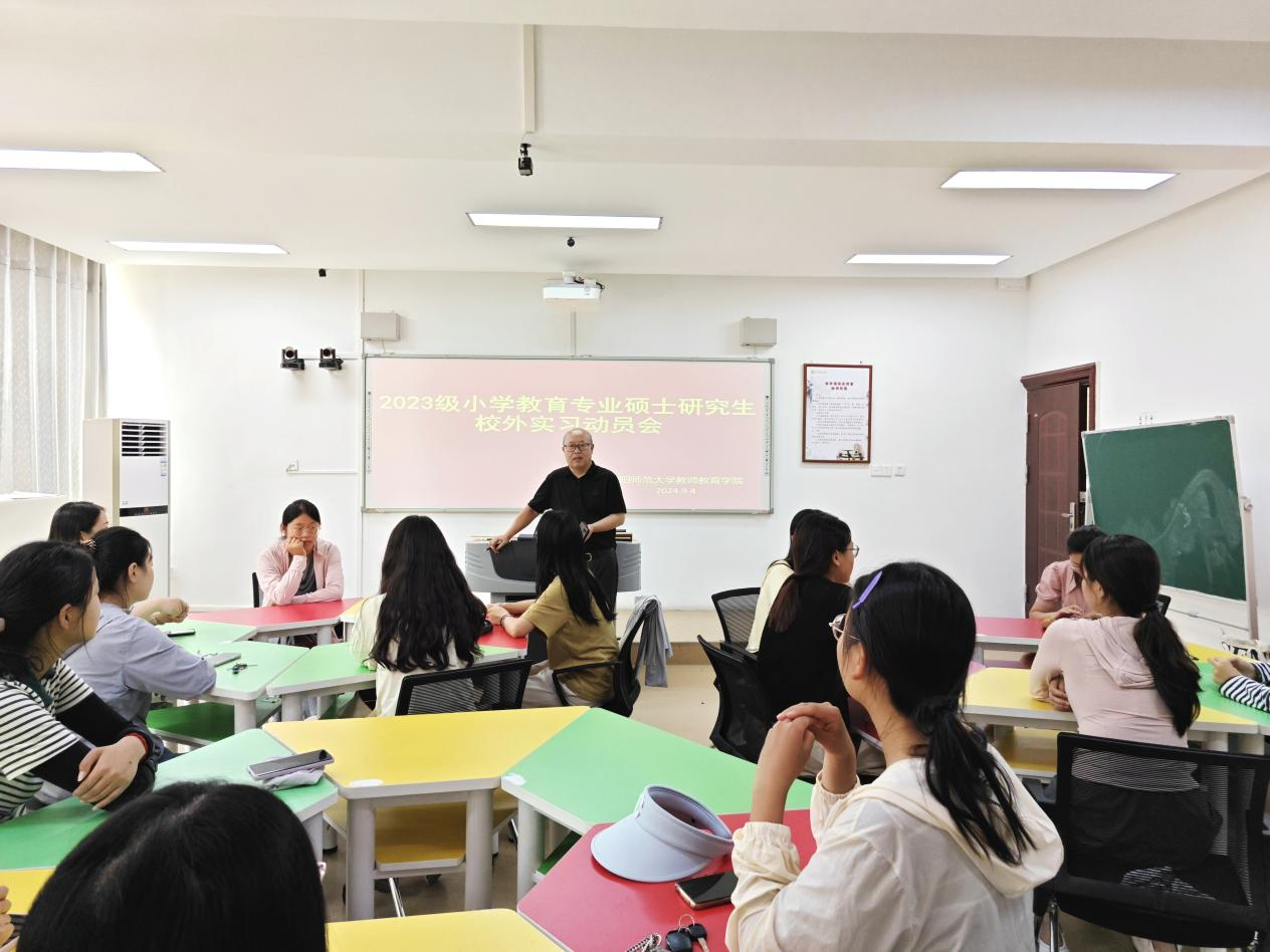 为提升研究生教育实践能力和职业素养,确保教育实习工作顺利进行,9月4日上午,太阳成集团tyc151cc在教七楼402召开了2023级小学教育专业硕士研究生教育实习动员会。会议由院长李文田主持,研究生秘书常燕燕及2023级全体研究生参加了本次动员大会。