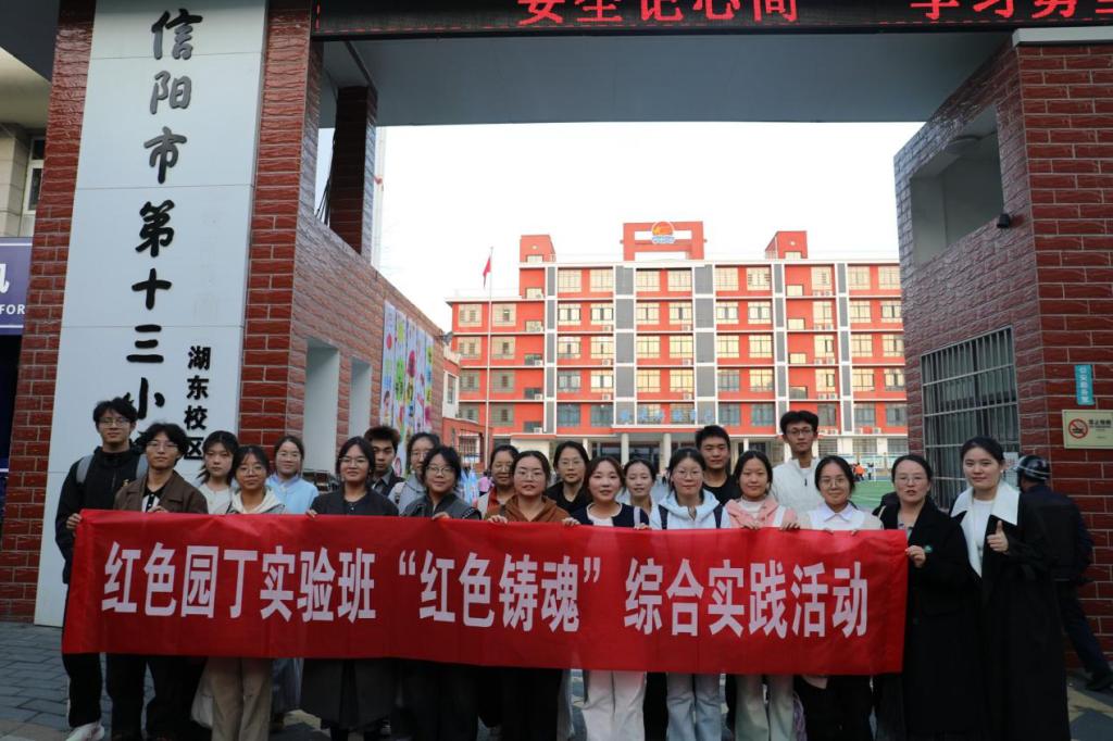 10月28日,在谭阿明、康文慧两位老师的带领下,太阳成集团tyc151cc2024级红色园丁实验班全体学生前往信阳市第十三小学湖东校区,成功开展了以“红色铸魂”为主题的综合实践活动。