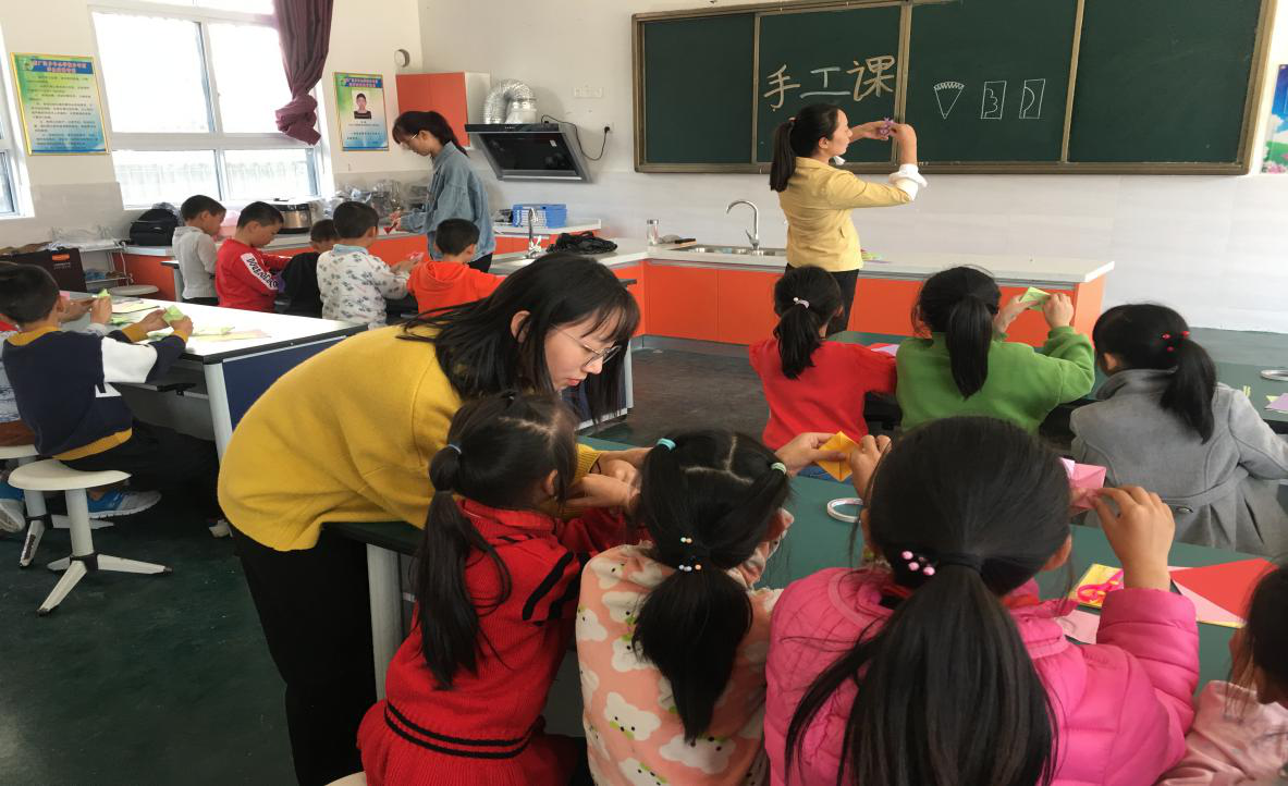 午间服务期间,实验班同学与各班小学生亲切交流,进一步了解小学生在校学习和生活情况。下午,实验班同学分6组对列宁小学三、四年级学生进行了手工、绘画、书法、舞蹈、音乐等不同形式和丰富的综合活动课程教学活动,实验班同学从容自然的授课风格、灵活有趣的授课方式深受学生们喜爱,也赢得了列宁小学领导老师的一致好评。列宁小学曹校长表示,实验班学生们的到来,解决了新县列宁小学缺乏手工、绘画、书法等综合实践活动课程师资的问题,促进了革命老区学生的全面发展。此次实习支教活动,红色园丁实验班与新县列宁小学采用分年级结对子方式,通过实施基础教育支持计划,开展实习支教活动,建立高校与基础教育长效协同培养机制和实习实训平台。