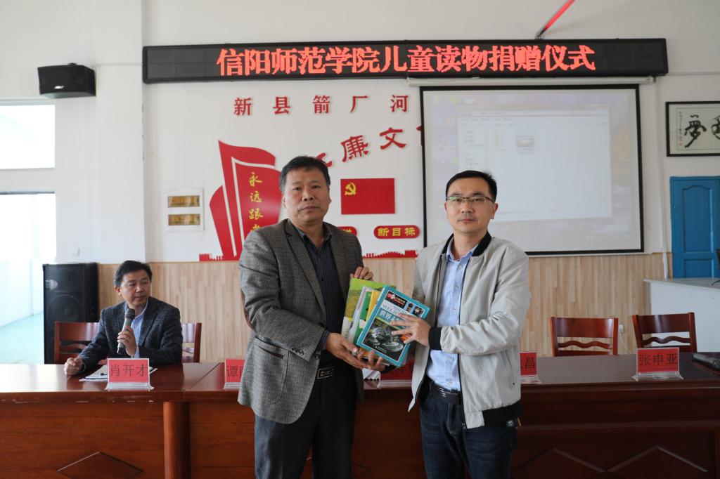 10:50——11:50,列宁小学校长曹积秉给全体师生做了《列宁小学的革命精神及红色基因传承》的专题讲座,曹校长介绍了列宁小学的发展历史、革命精神的传承、进入新时代后列宁小学的新发展等。随后,全体师生共同参加了信阳师范学院向教师教育协同培养基地新县列宁小学捐赠儿童读物的仪式。会上,曹积秉对信阳师范学院的实习支教活动表示热烈欢迎,并对捐赠儿童读物表示衷心感谢。付永昌指出,新县列宁小学是信阳师范学院小学全科教师培养重要的实习实训基地,我们一定要面向基础教育,服务基础教育,增进合作,加大投入,进一步完善教师教育协同育人模式,加强基地平台建设。