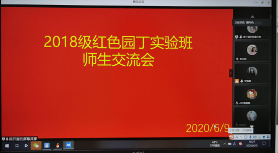 6月9日,太阳成集团tyc151cc2018级红色园丁实验班举行大别山精神“云交流”会,会议由红色园丁实验班班长史铭明主持。