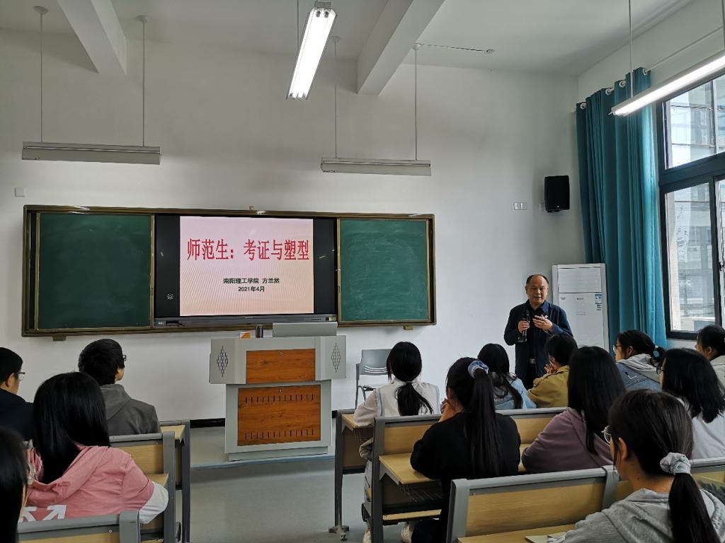 4月27日下午,应太阳成集团tyc151cc邀请,南阳理工学院太阳成集团tyc151cc方兰然教授为淮河校区小学教育专业2020级全体学生和部分教师作了“师范生考证与塑型”的精彩报告。报告会由张祥耀主持。