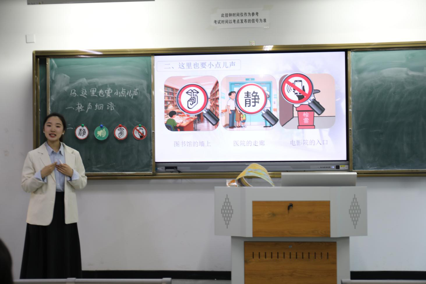 比赛现场秩序井然,氛围紧张而热烈。选手们立足学科特点,巧妙设计教学环节,在有限的时间内充分展现了对教学内容的深入理解与课堂驾驭能力。从清晰生动的语言表达、层次分明的板书设计,到灵活有效的师生互动、与现代教育技术手段的自然融合,每一位选手都全力以赴,呈现出一节节富有创意、充满活力的模拟课堂,充分体现了师范生扎实的理论基础与初步的教学实践能力。经过激烈角逐,2号选手贾梦瑶、4号选手潘圆锐和9号选手霍畅凭借其出色的教学设计、稳健的讲台台风和良好的课堂互动效果,赢得了评委的一致认可,荣获比赛一等奖。