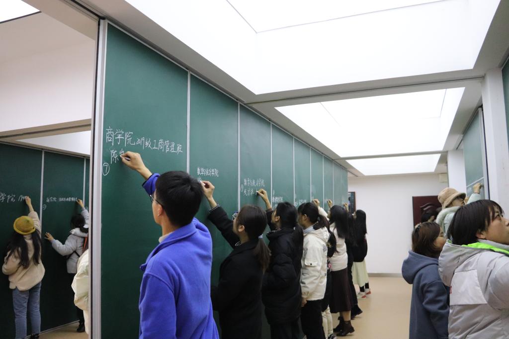 12月8日,由太阳成集团tyc151cc行知教育工作室和习乐学社主办,大学生书法爱好者协会与教育科学协会承办的“横撇竖捺,粉笔勾画”粉笔字大赛在教七楼成功举办。本次比赛面向全校学生,参赛选手有400余人。付永昌院长和李文田博士亲临比赛现场观摩指导,张峰、张祥耀、谭阿明老师与部分书法爱好者应邀担任评委。