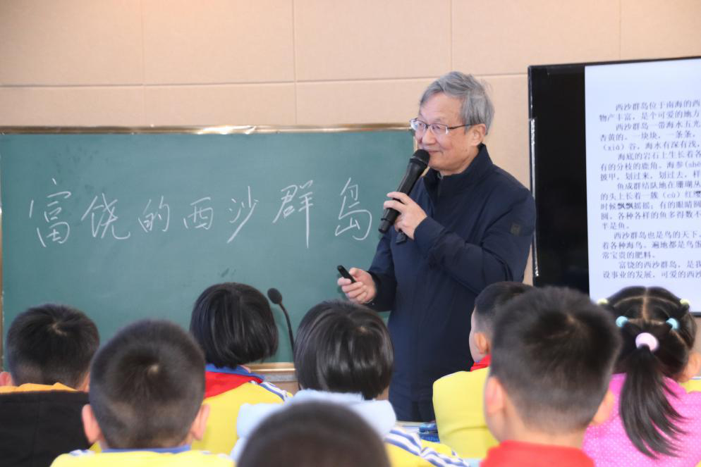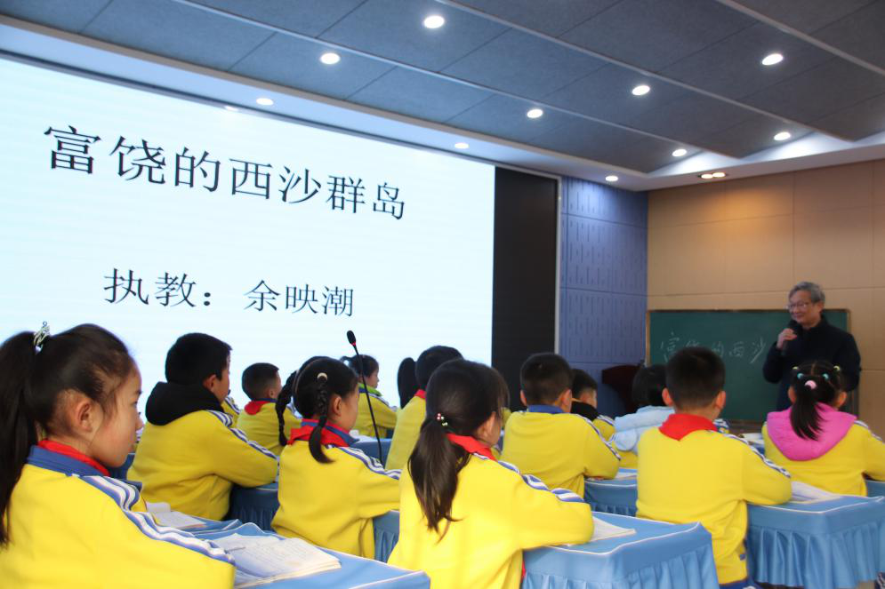 第三节和第四节是示范课,展示“板块式”高效阅读课堂,由余映潮老师亲身示范,执教三年级语文课《富饶的西沙群岛》,和五年级语文课《四季之美》。《富饶的西沙群岛》中,余映潮老师设置了三个板块,分别是:初读、语言积累;再读,课文发现;精读,综合训练。《四季之美》中,同样也是板块教学,分为:一读:了解一种写作思维;二读:品味一种行文的笔法;三读:感受几种描写的美,为小学高年级散文类教学提供了灯塔般的指引。余老师的课堂如春风化雨,感染了在场的每一位学生、每一位老师,余老师的教学娓娓道来,独到精妙,引导着在座的每一位老师和同学不断反思教学、研究教学、创新教学。