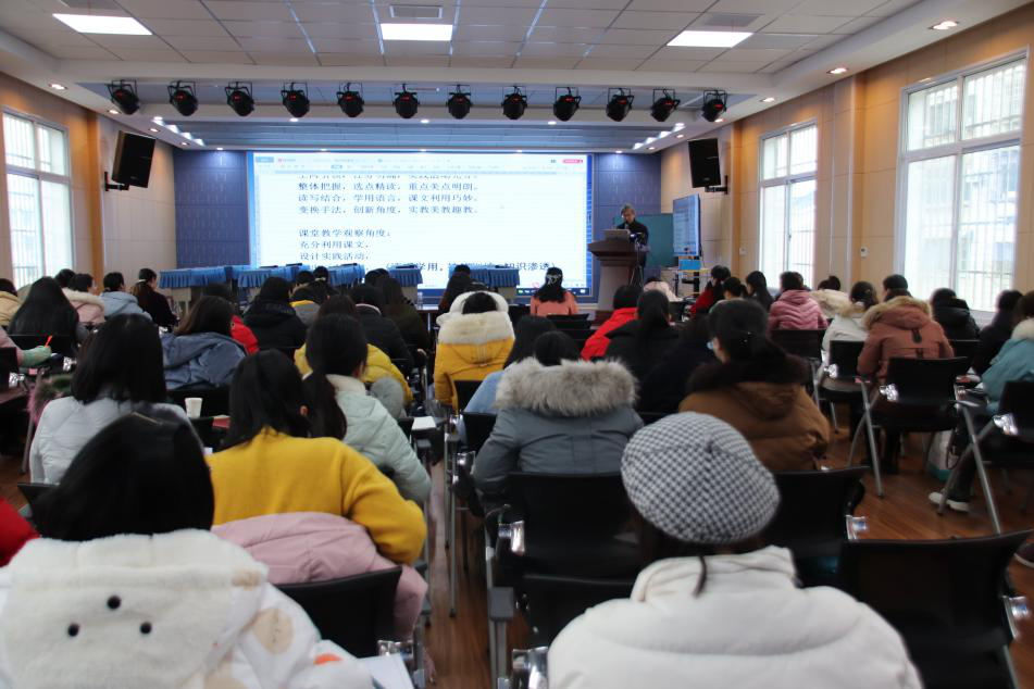 下午,余映潮老师进行了《运用“板块式”教学思路设计学生的课堂实践活动》主题报告。运用“板块式”教学思路与“主问题”活动方式,是对教学技能,课堂教学效率提升最有影响的措施。此外,余老师还列举了9节课例的教学创意,老师们紧扣阅读教学的六要素:语言学用、技能训练、知识渗透、集体活动、关注气质、设计出了形态、形式丰富的“板块”,目的就是在于让所有的学生都能参与扎实的课堂实践活动。余老师讲得娓娓道来,大家听得沉浸其中。本次活动,余映潮老师不仅听课、评课,还亲自上示范课,并做精彩讲座,再次让我们领略了语文大家深厚的教学功底和精湛的教学艺术。站着巨人的肩膀上,我们可以看得更远,聆听大师的智慧,我们可以学得更多,成长得更快更好!