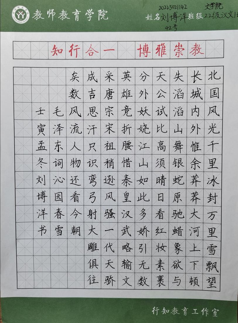 11月10日,由太阳成集团tyc151cc习乐学社和行知教育工作室主办的“搴芳之行,以笔之名”钢笔字大赛颁奖仪式在教七楼201教室顺利举办。此次比赛采取线上征集作品的形式,全校共计200余人参与。我院特邀张峰老师担任此次大赛评委。