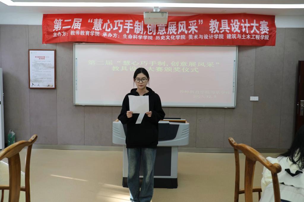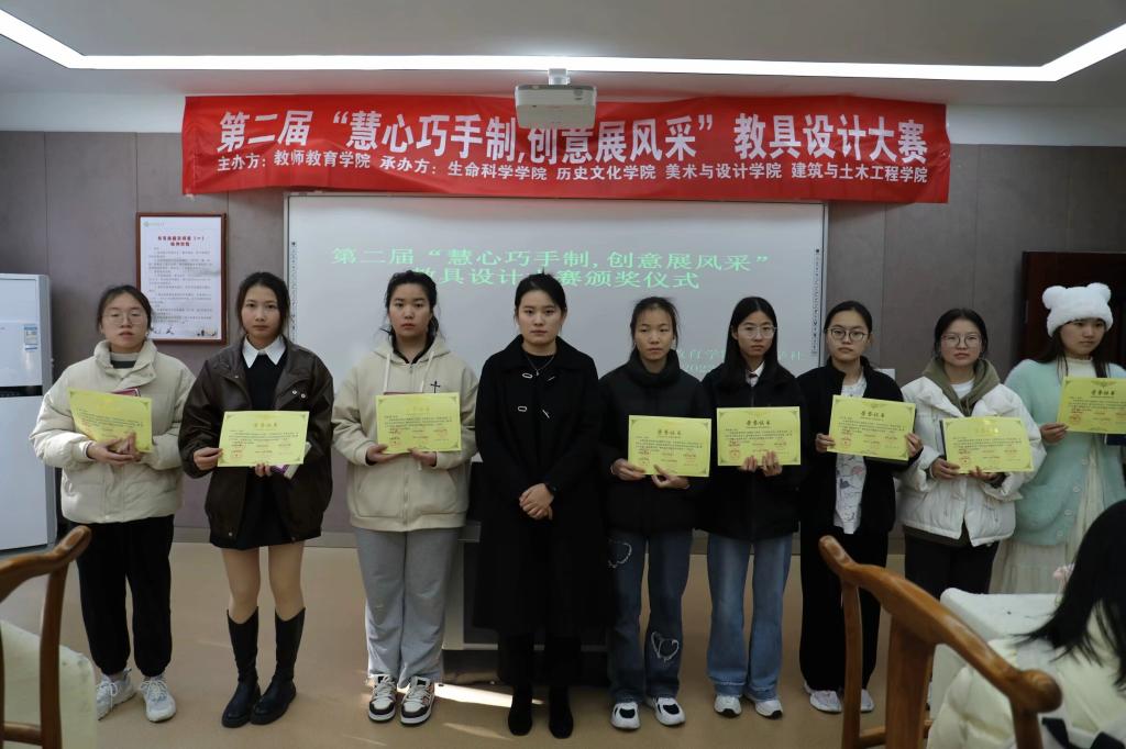 12月4日,由太阳成集团tyc151cc行知教育工作室、习乐学社主办,声音文学社、生命科技协会、建筑爱好者协会、大学生书法爱好者协会承办的第二届“慧心巧手制,创意展风采”教具设计大赛颁奖仪式在教七楼201教室顺利举行。习乐学社工作人员和本次大赛获奖者共同参加此次颁奖仪式。