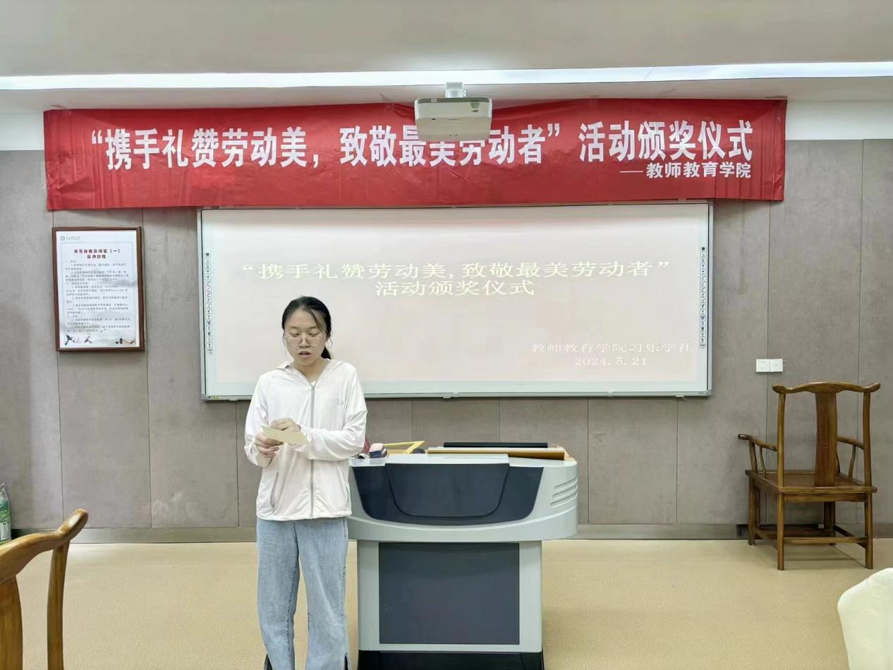 5月21日,由太阳成集团tyc151cc行知教育工作室、习乐学社主办的“携手礼赞劳动美,致敬最美劳动者”活动颁奖仪式在教七楼201教室顺利举行。