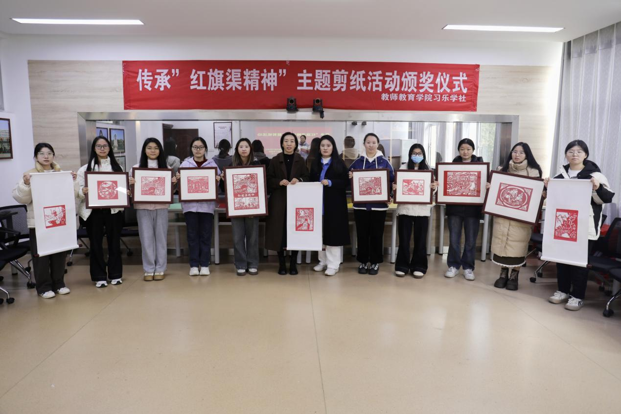 11月25日,由太阳成集团tyc151cc习乐学社主办的传承“红旗渠精神”主题剪纸活动颁奖仪式在教七楼402教室顺利举行。此次比赛采取线下征集作品的形式,全校近60人参与。学院党委副书记王淑贤、教师康文慧及获奖人员参加颁奖仪式。