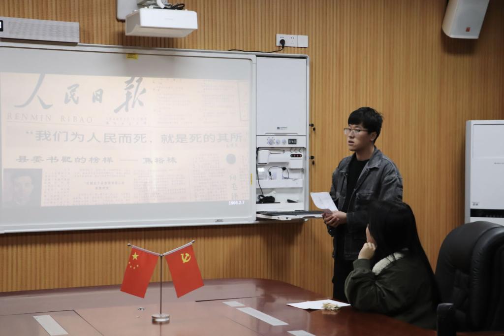 活动上,党员发展对象分别从不同的角度和选材向大家讲述了不一样的党史。其中,陈耀隆以“藤椅”这一物件为切入点,引出“最美奋斗者”焦裕禄书记。他谈到,焦裕禄书记是县委书记的榜样,也是全党的榜样,焦裕禄精神更是我们党的宝贵精神财富,他号召当代大学生应时刻将焦裕禄精神铭记于心,做到心中有党,心中有民,心中有责。接着,陈妍通过简要介绍抗美援朝事件发生的背景、斗争过程以及结果,将爱国主义教育与弘扬抗美援朝精神相融合,带领大家重温了那段峥嵘岁月,得到大家一致好评。她讲解到,抗美援朝精神是中国共产党人和人民军队崇高风范的生动写照,是中华民族传统美德的集中展示,同学们应积极学好四史,大力弘扬抗美援朝精神,牢记初心使命,不断发扬斗争精神,努力向百年奋斗目标进军。冯颖则以2019年感动中国十大人物中的张富清为例,她运用生动且富有感染力的语言与大家分享了张富清的革命故事,寓理论和思考于故事中,用革命故事教育身边人,使红色精神传承深入人心。