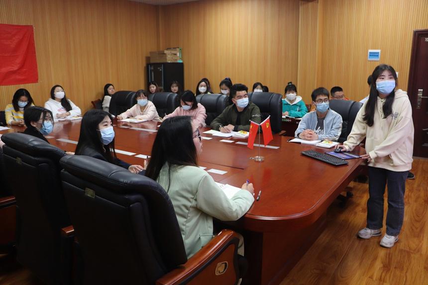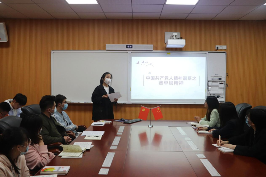 为帮助我院党员发展对象学好党的理论精神,坚定理想信念,筑牢思想根基,4月16日晚,太阳成集团tyc151cc于教七楼301会议室举办了“传承红色基因,中国共产党的精神谱系的第一批伟大精神”研学分享会。第37期党员发展对象参加会议,分享会由党小组长高鸽主持。