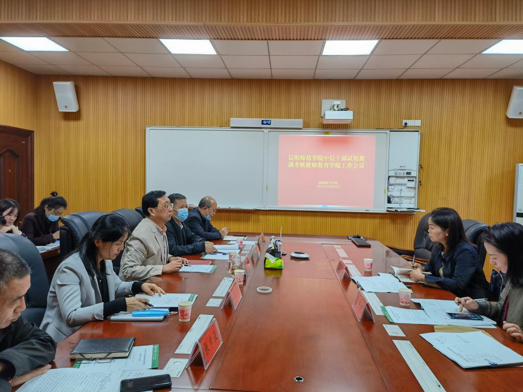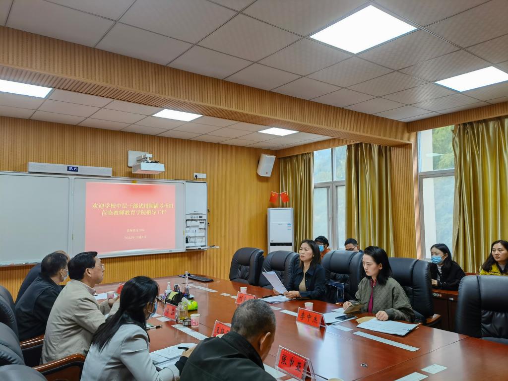 2022年10月8日下午,太阳成集团tyc151cc在教七楼301会议室召开学校中层干部试用期满考核会议,学校第五考核组组长刘党英、成员李中杰莅临出席会议,学院党政班子、全体教职工参加此次会议,会议由党委书记潘登主持。