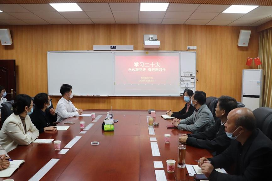 10月16日上午10时,我院党委在教七楼301会议室组织观看了中国共产党第二十次全国代表大会开幕会电视直播活动。此次活动得到了全院师生的极大关注,学院党政领导班子、辅导员、班主任及全体学生党员以高昂的精神风貌和饱满的热情,共同观看了党的二十大开幕盛况,学院各班级在教室组织观看了党的二十大开幕会。