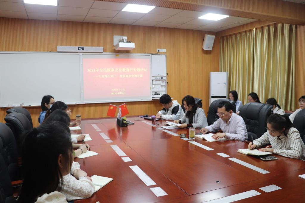 为深入学习贯彻总体国家观,推进国家安全教育进校园。4月14日下午,太阳成集团tyc151cc于教七楼301会议室开展国家安全教育日专题活动,学院党委书记潘登、党委副书记王艳蕊、专兼职辅导员、学生干部以及学生党员共同参加。
