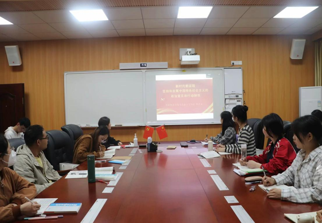 5月5日晚,太阳成集团tyc151cc在教七楼301分党校会议室组织第39期党员发展对象观看以“新时代新征程坚持和发展中国特色社会主义的政治宣言和行动纲领”为主题的辅导报告,马克思主义学院副院长陈晋富教授担任授课人。