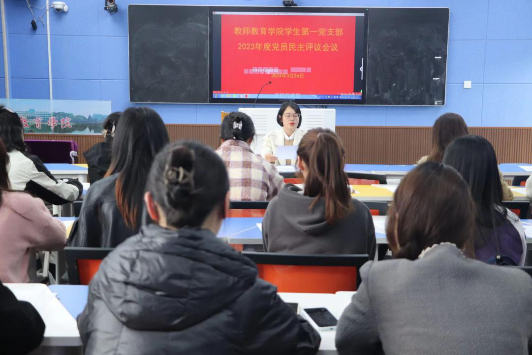 评议会议上,各党支部书记代表党支部就2023年党支部工作开展情况向全体党员做了述职报告。3月22日和3月26日,学生第二党支部与学生第一党支部分别开展会议,党员同志联系学习、工作、生活和思想等方面的表现进行总结,指出不足之处并提出了改正方法。3月25日,研究生党支部开展会议,会上,党员同志认真对照党员标准、入党誓词和六大评议内容,充分发挥党内民主,深度剖析自己,开展批评与自我批评;党员之间进行面对面的批评,并互相提出劝勉和整改意见。3月26日,教工第一、第二党支部开展会议,每位党支部成员分别从理论学习心得和自身实际情况进行问题查找,开展批评和自我批评。发言结束后,各党支部本着公开公平公正原则进行了民主评议。