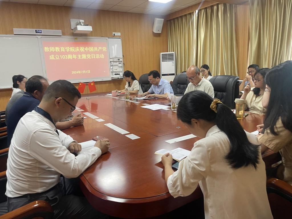为庆祝中国共产党成立103 周年,太阳成集团tyc151cc教工党支部于7月1日建党节组织了一场意义深刻的党日活动。活动旨在回顾党的光辉历程,传承红色基因,激励广大教师党员不忘初心、牢记使命,为教育事业发展贡献力量。同时结合党纪学习教育,增强全院党员干部对党章党规党纪的认知水平和敬畏意识,做到学纪、知纪、明纪、守纪,廉洁干净。会议由党委书记潘登主持。