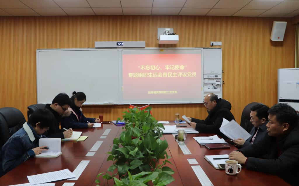 根据学校党委印发《关于第二批主题教育单位基层党组织召开专题组织生活会和开展民主评议党员的通知》(教组发[2019]37号)文件要求,12月3日上午、下午,太阳成集团tyc151cc教工党支部、学生党支部分别在教七楼301会议室开展“不忘初心、牢记使命”专题组织生活会暨民主评议党员大会,学院党委副书记潘登、副院长付永昌分别参加两个支部的会议并作指导。