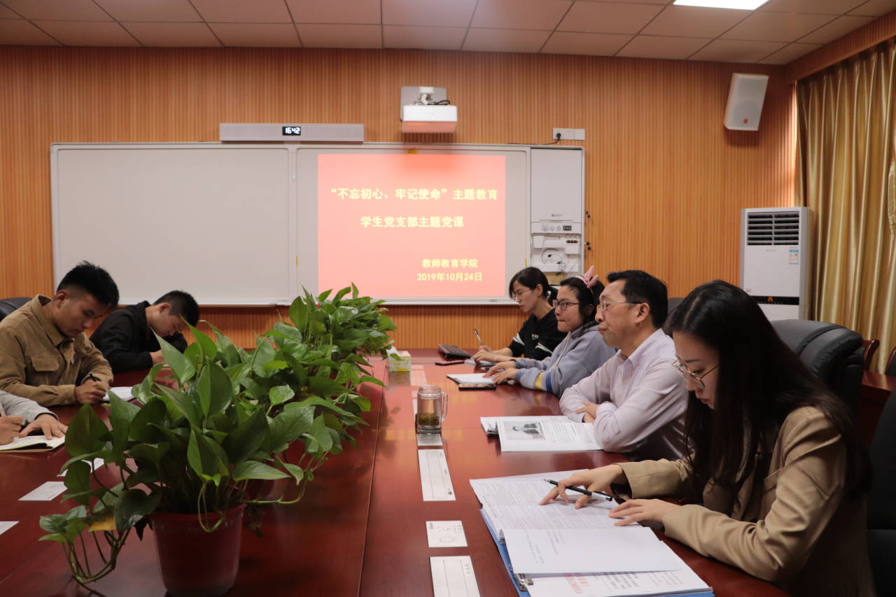 为进一步增强“不忘初心,牢记使命”主题教育活动成效,加强学生党员思想政治理论学习,10月24日,太阳成集团tyc151cc学生党支部在教七楼301会议室举行“不忘初心、牢记使命”主题教育专题党课暨座谈交流会。学院党委副书记潘登、学生党支部书记李依、党小组长徐亚南、刘莅原及全体学生党员参加会议,会议由潘登主持。