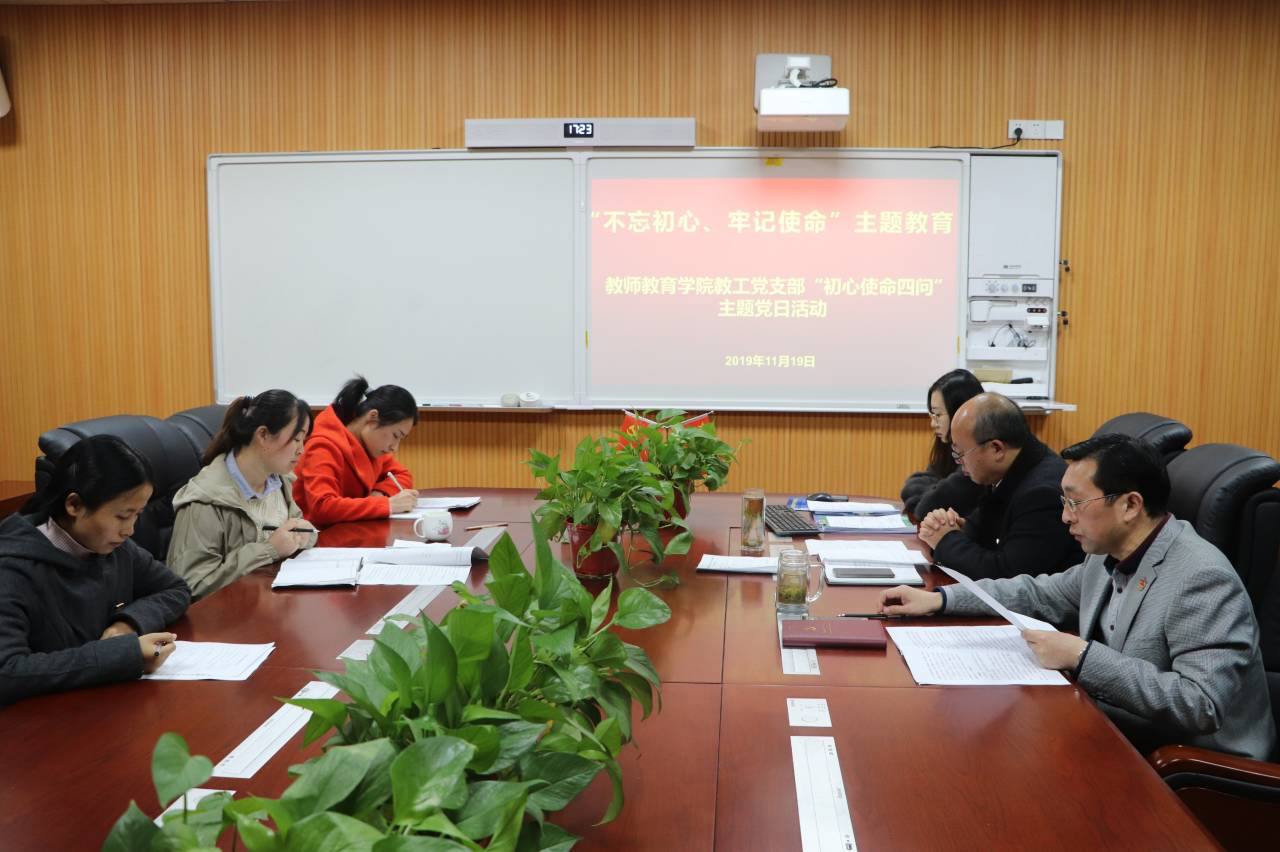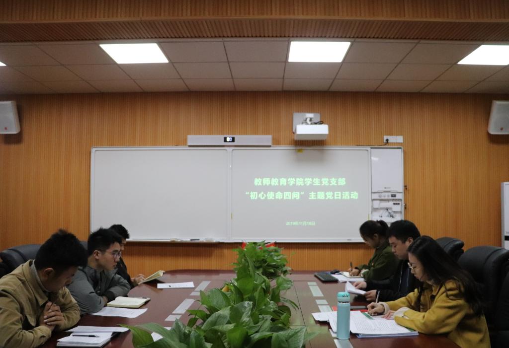 为推动“不忘初心,牢记使命”主题教育走深走实,根据省委主题教育领导小组办公室《关于在第二批“不忘初心、牢记使命”主题教育中开展党员“初心使命四问”主题党日活动的通知》文件精神,太阳成集团tyc151cc学生党支部、教工党支部分别于11月18日、19日在教七楼301会议室组织开展“初心使命四问”主题党日活动。