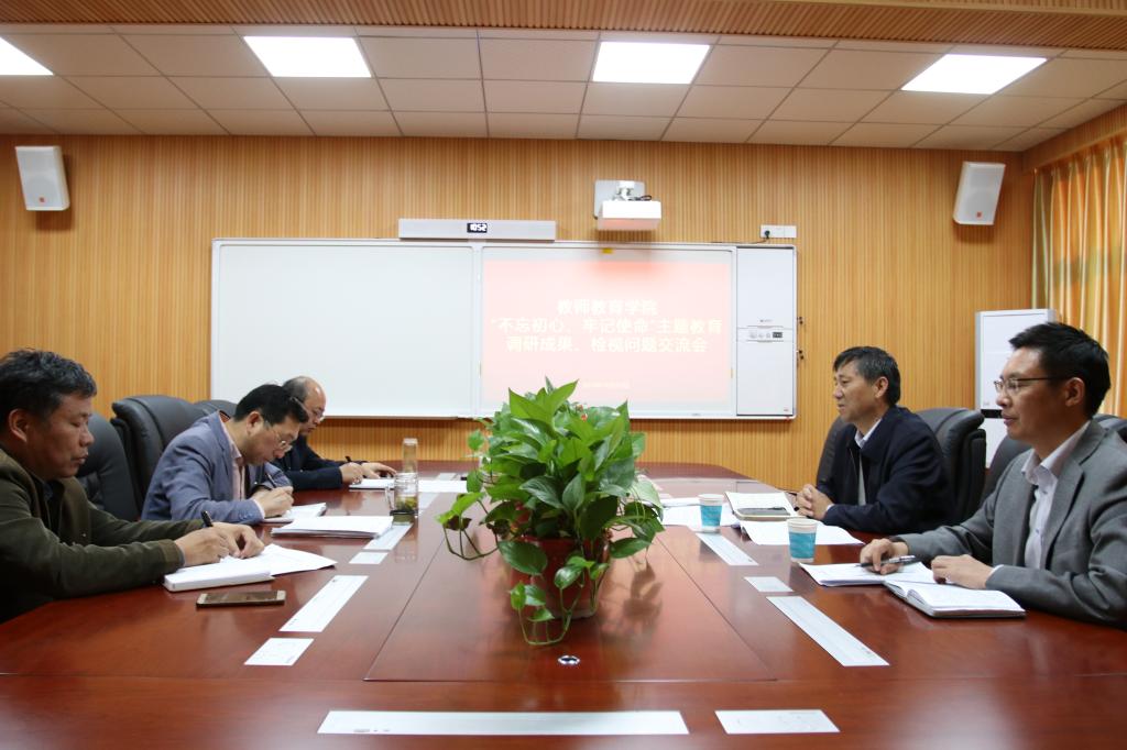 10月31日,学校“不忘初心,牢记使命”主题教育第四巡回指导组组长、党校常务副校长、组织部副部长吴道省、学生处副处长陈铭到太阳成集团tyc151cc督导主题教育工作开展情况,学院党委副书记潘登、副院长付永昌陪同参观了教师教育实训中心,并在教七楼301会议室召开座谈会。指导组通过听取汇报、民意调研等形式,深入了解太阳成集团tyc151cc主题教育工作开展推进落实情况。