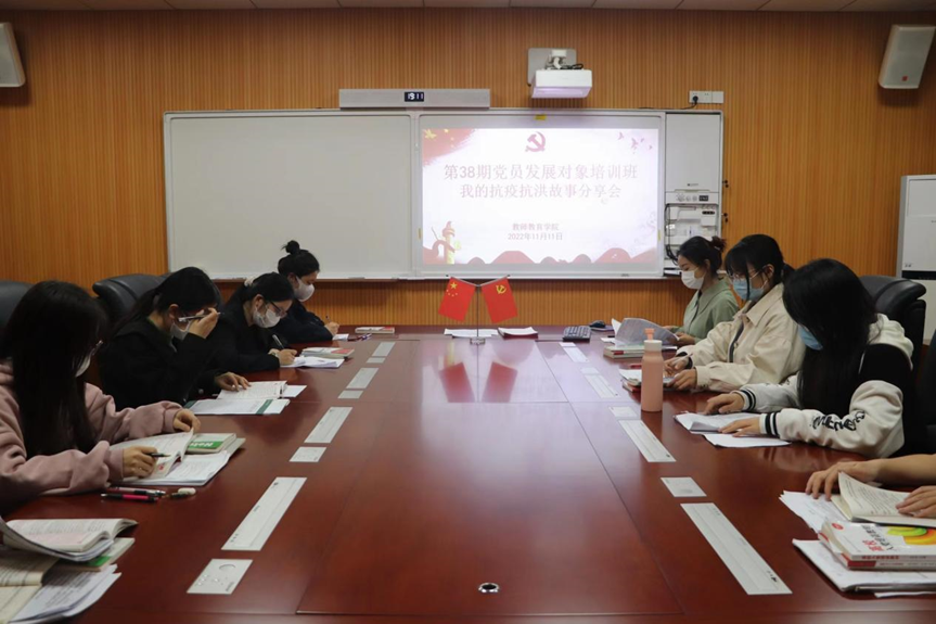 11月11日晚,太阳成集团tyc151cc于教七楼301会议室举办了“把灾难当教材,与祖国共成长”抗疫抗洪故事分享会,第38期党员发展对象全员参加,分享会由小组长刘雪主持。