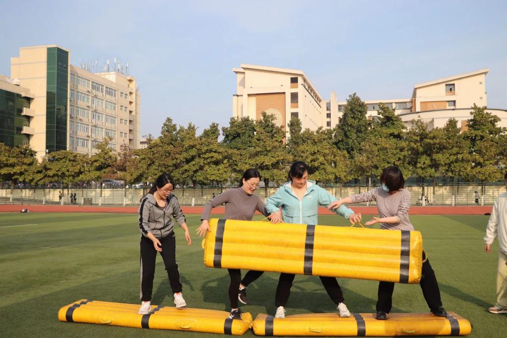 比赛开始前,活动场聚集了参加本赛的教师,我院教师积极热身,为本次比赛做充分准备。本次运动会分为趣味活动和跳绳比赛两场,在上半场趣味运动“袋鼠接力”“同舟共济”“雷霆战鼓”活动中,我院教师团结协作,默契配合,沉着自信,不轻言放弃,赛出了风格,赛出了水平。在下半场跳绳比赛中,我院老师积极探讨技巧,团结一致,在跳绳中用口号提高默契,相互配合。现场加油声、喝彩声、欢笑声此起彼伏,女教职工们在此次活动中展现出拼搏向上的精神。