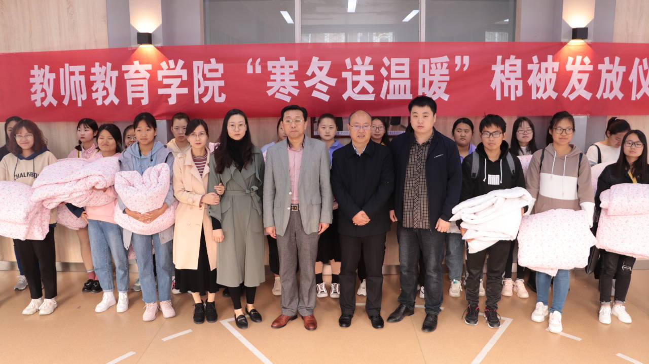 为进一步深入“不忘初心、牢记使命”主题教育,帮助学子温暖过冬,11月14日,我院“不忘初心、牢记使命”主题教育2019年“寒冬送温暖”系列活动在教七楼104教室举行。我院党委副书记潘登、党委委员李文田出席了仪式,辅导员李依、郑亚丽、刘莅原及25名受助学生代表参加了爱心棉被发放仪式。