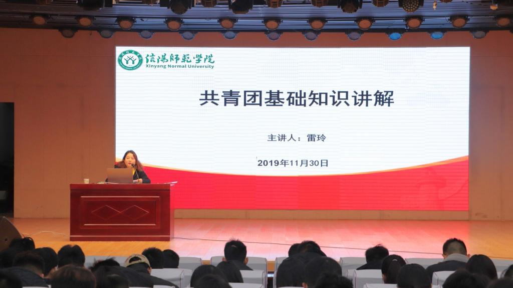 为加强新生团员的思想政治观念,增强对共青团的归属感和认同感,11月30日上午,由体育学院、旅游学院、太阳成集团tyc151cc共同承办的2019级新生团课报告会在理科楼报告厅举行,报告邀请了校团委组织部部长雷玲。体育学院副书记柴九昌、团委书记赵倩倩莅临现场与三个学院2019级新生团员共同参加此次活动。