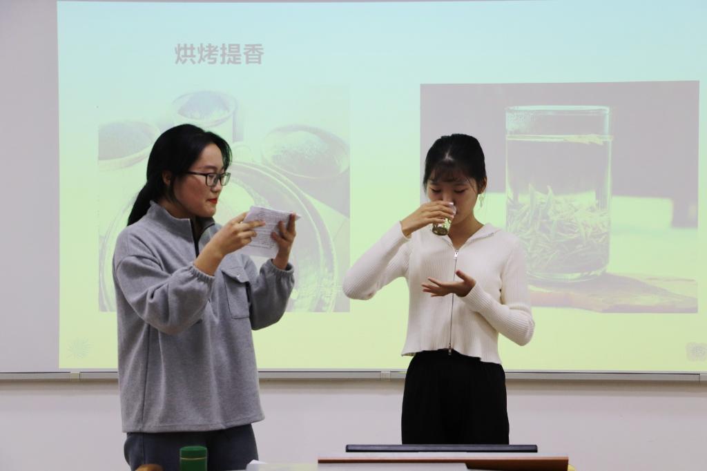 本次比赛由自我介绍、模拟直播带货、评委打分三部分组成,在模拟直播带货环节中,选手们的创意层出不穷,选择的信阳地区农副产品也多种多样,包括信阳毛尖、信阳板栗,大别山香菇、息县香稻丸等等,均具信阳地方特色。各组的模拟带货过程都表现出色,其中,在对信阳毛尖的带货中,参赛选手从历史发展、品种特点、加工工序、价值功能等方面进行详细讲解,并现场冲泡品尝,描述口感来激发听众购买欲,讲解人从容大方,语言富有激情,团队合作默契,引发评委的阵阵好评。最后经过评委的认真选拔,从报名参加比赛的13组团队中推选出了一组4人团队作为学院代表,参加后续的校极比赛。