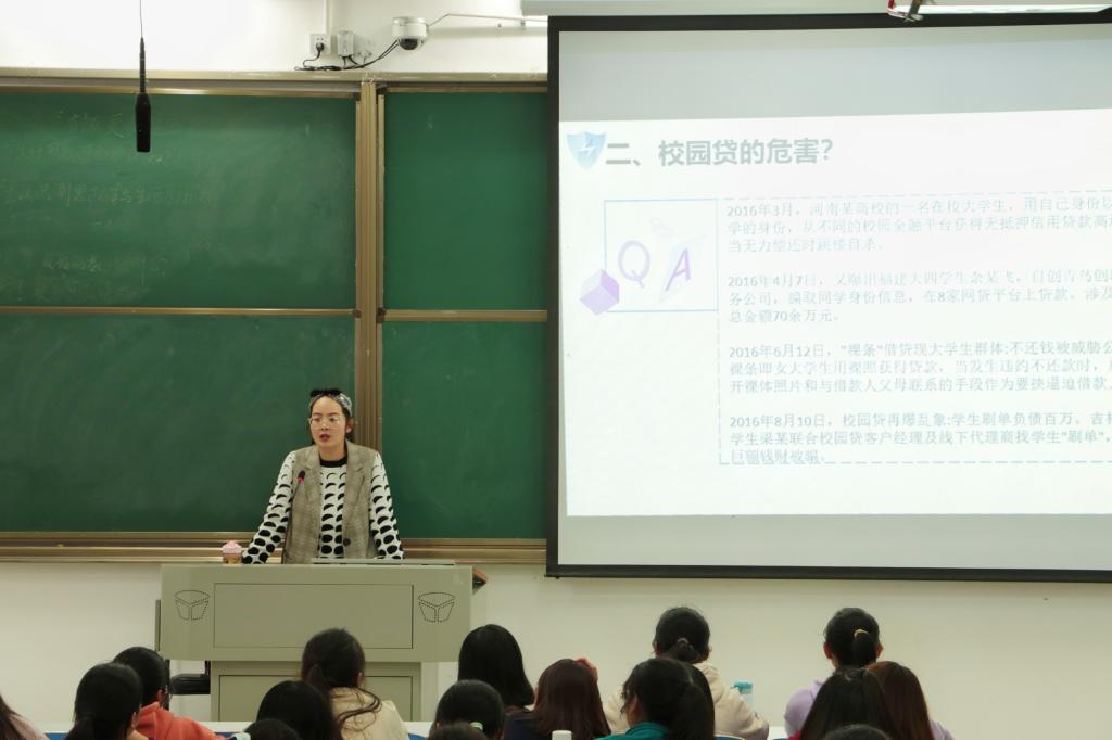 课上,李杨老师首先就校园贷的含义向同学们进行了详细介绍。她指出,校园贷的本质是帮助贫困及创业学生,初衷良好,但由于其办理业务门槛低、经营者能力参差不齐、合作信息不透明等原因,校园贷变成了校园害,使大学生一经借贷便深陷其中。随后,她通过讲述近年来校园贷所引发的悲剧案例向同学们说明了校园贷的危害。她表示,在每一起因校园贷引发的不幸背后,都事关学子的前程和家庭的命运,由于大学生社会经验匮乏、虚荣心强、消费观念错误等原因,易被锁定为诈骗对象,不法分子利用这一特点衍生出较多花式校园贷,如:套路贷、培训贷等,她提醒同学们应时刻擦亮慧眼,以防卷入其中,若陷入校园贷应及时主动与家人坦白并报警。团课最后,李杨老师希望同学们做好校园贷的预防,从树立理性的消费观念做起,警惕非法平台,选择正规渠道,珍惜个人信用,以远离非法校园贷款。