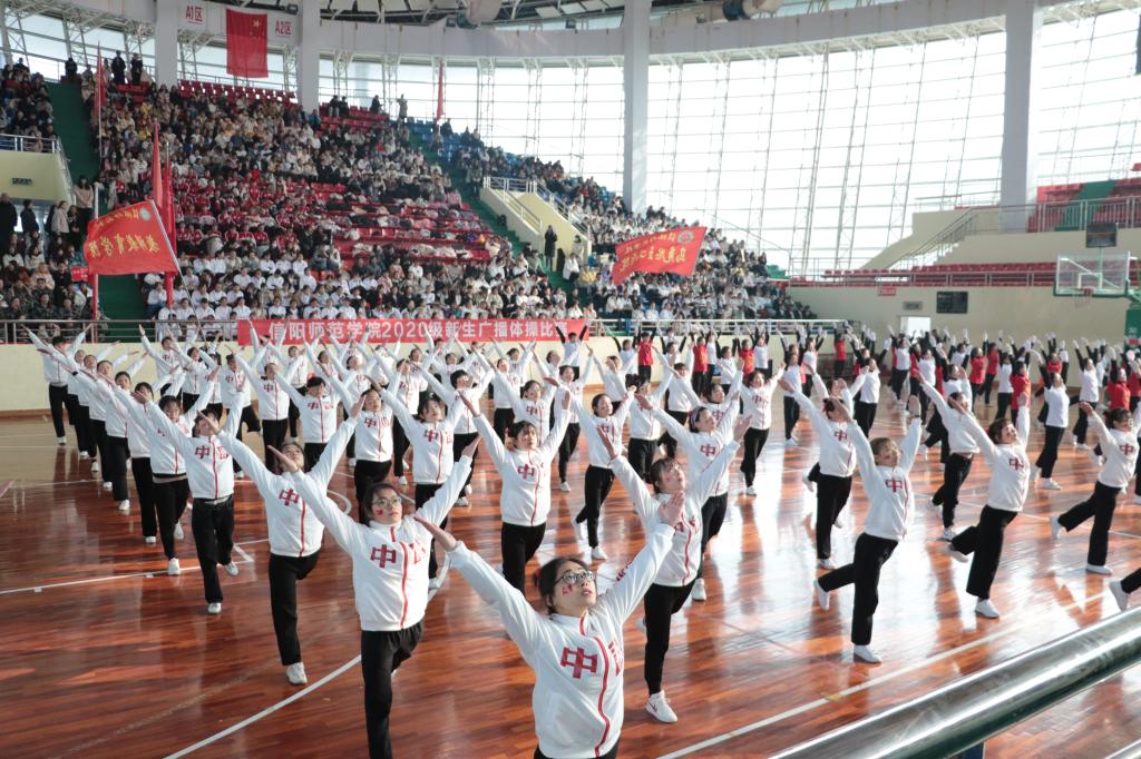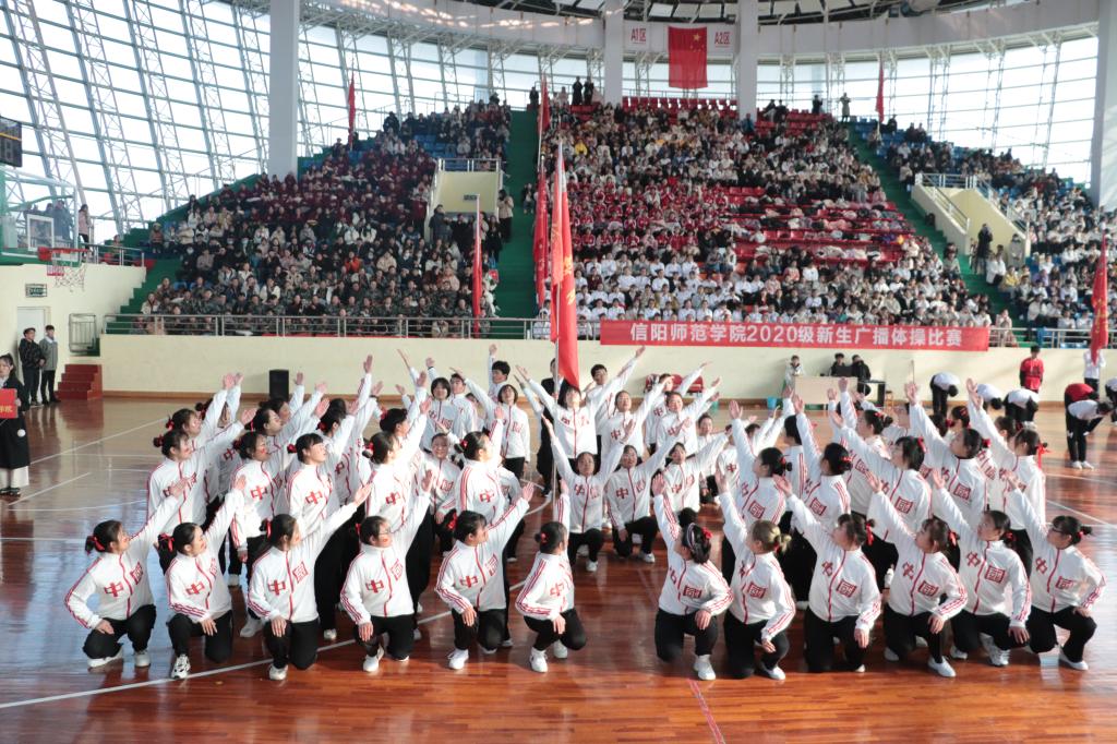 为积极响应国家“阳光体育运动”的号召,进一步增强同学们的体质,充分展现当代大学生的青春风采,11月29日下午,信阳师范学院2020级新生广播体操比赛在体育馆隆重举行。此次比赛由各院系学生会主席担任评委,地理科学学院团委书记曹鹏鹏出席本次比赛。