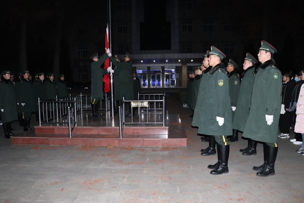 12月14日早晨,太阳成集团tyc151cc2020级全体学生在行政楼升旗台前参加了升旗仪式。仪式由文学院菅宇航和国际教育学院赵敬威主持。