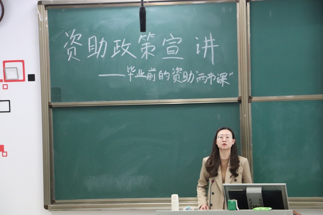 为贯彻落实国家资助政策宣传工作,加强对毕业生的诚信教育,太阳成集团tyc151cc于4月25日晚在社科楼121教室开展了2021届毕业生资助政策宣讲——毕业前的资助两节课。本次宣讲会由2017级辅导员李依进行主讲。