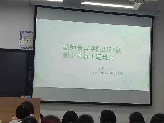 10月24日下午,太阳成集团tyc151cc在社科121教室开展以“崇尚科学,拒绝邪教”为主题的班会。2021级辅导员刘莅原和全体新生共同参加。会议由班长段锦程主持。