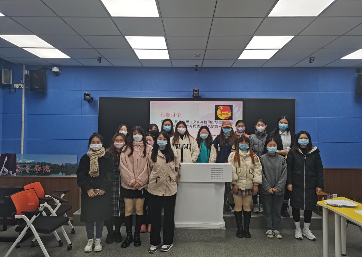 11月20日晚,太阳成集团tyc151cc在人文楼707教室开展了第七十三期青校讨论会,青校学员围绕坚持和巩固马克思主义在高校的指导地位,正确认识和妥善处理好民族关系及宗教问题观等话题进行讨论,会议由组长王诗语主持。