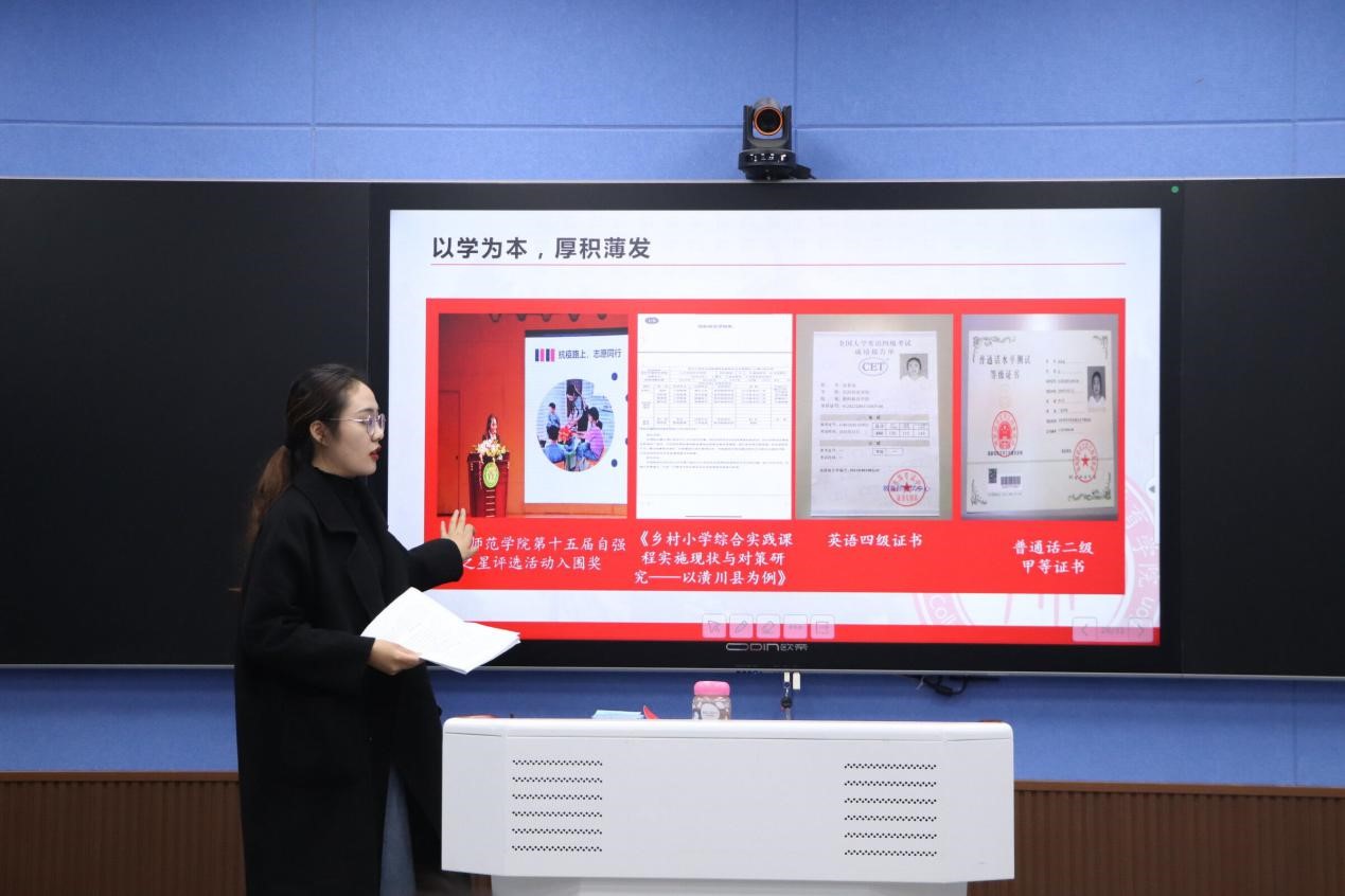 会议伊始,四位学生代表依次进行发言。张秋雨以“扬鞭追梦,不负韶华”为主题,结合“三下乡”、扶贫工作、爱心学校等一系列志愿服务活动分享了经历中的收获与感动,她激励同学们把握青春年华,做最有意义的事。随后,李倩以学习成绩和综合测评为切入点,分享了自己学习习总书记“五四青年”重要讲话感悟,她鼓励青年学生增长才干,提高本领,成长为全能小教人。朱明榜围绕青校的地位和目的,讲述了疫情期间在社区的工作经历,他以习近平“七一”重要讲话为契机,谈到青年学生要有志气、骨气、底气,不负社会和时代的期望。陈钊就自己家庭情况从思想、学习、工作三方面鼓励大家自立自强,培养独立的人格,不抱怨不攀比,笑对苦难。四位学生代表的分享入耳入心,现场学员深受感染和鼓舞。大家纷纷表示,要自觉向先进看齐,以先进为榜样,立足本职,勇挑重担,奋发有为,真正把宣讲会精神体现在学习、工作实践中。